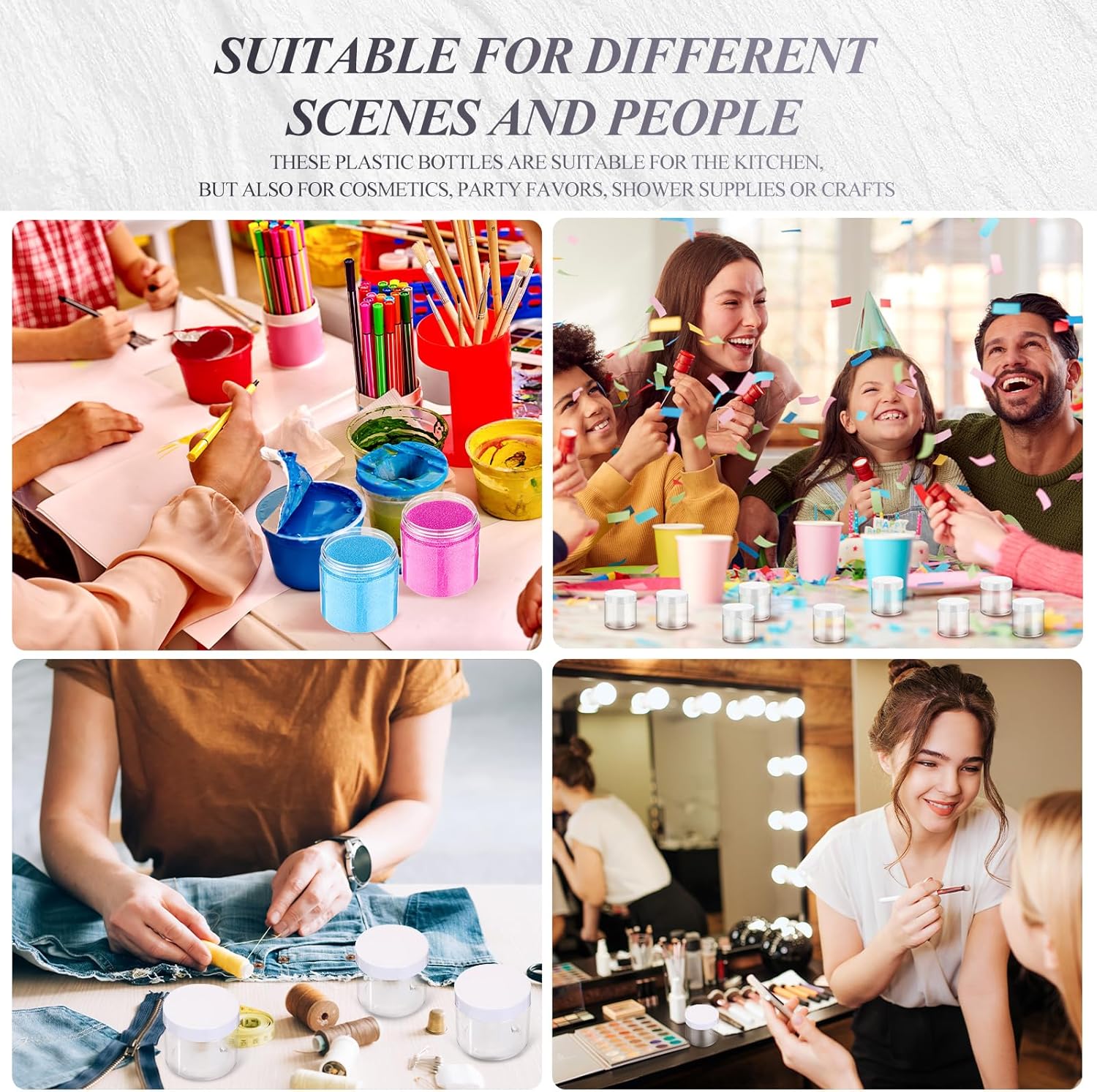 SATINIOR 36 Pieces 4 oz Plastic Jars with Lids Wide Mouth Airtight Reusable Container Acrylic Cosmetic Small Jars for Lotions Ointments Travel Toiletries Creams Make up Storage(White)
