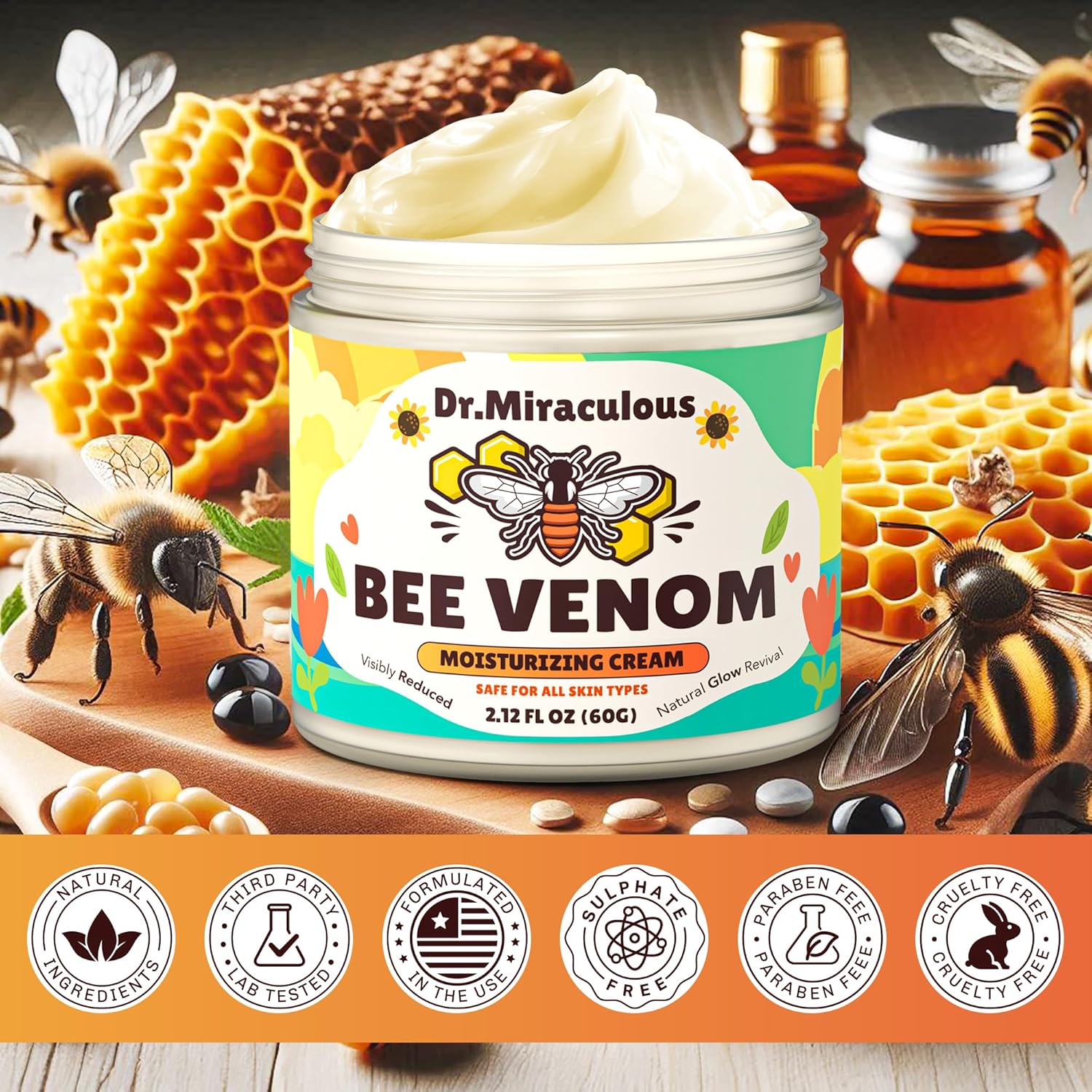 - Natural Bee Venom: Our bee venom cream is formulated with natural bee venom, offering a safe and effective way to promote smoother, more radiant skin.