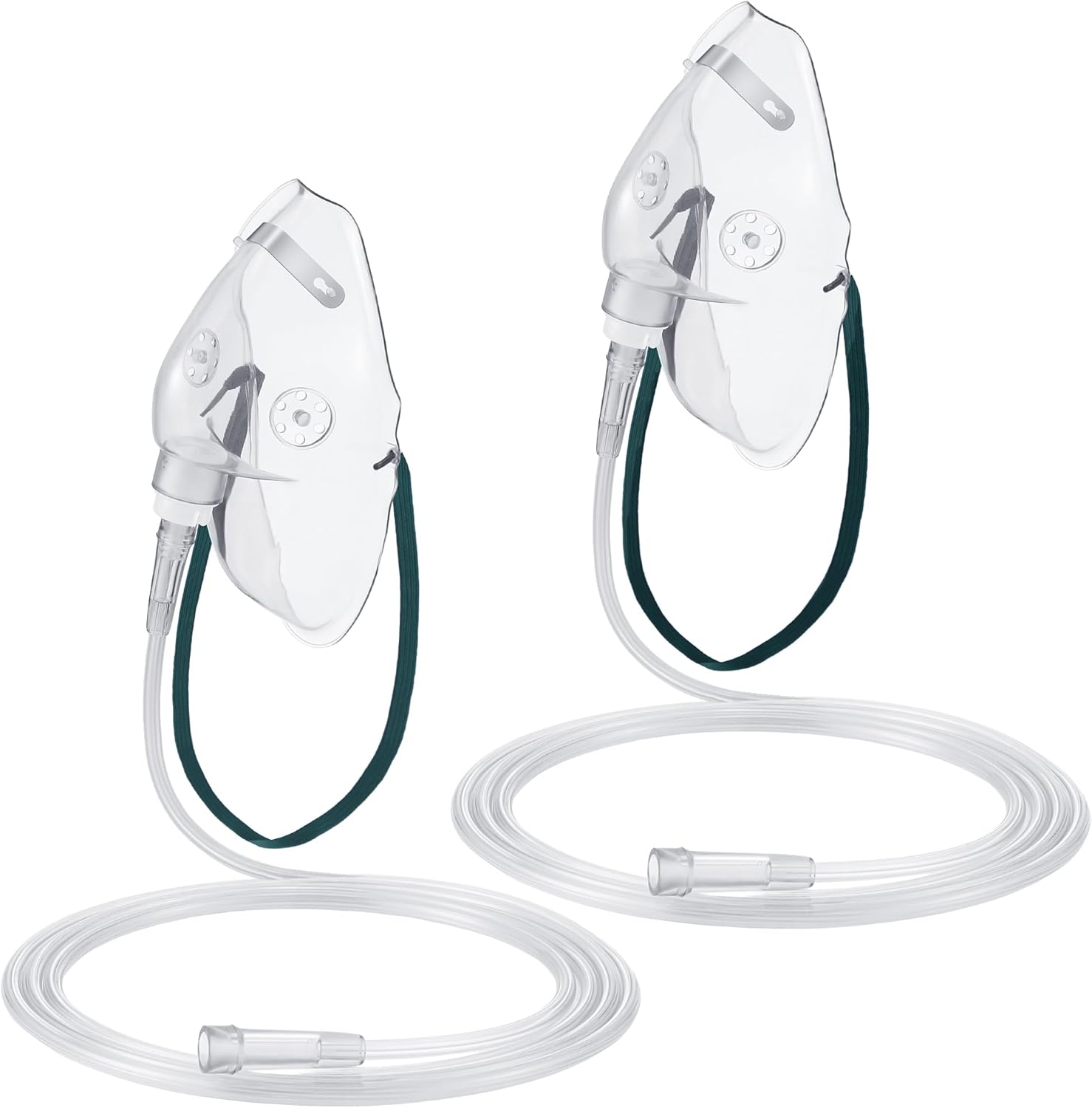 - Thoughtful Design: The oxygen mask for adult comes with an adjustable elastic headband that suits different head sizes, ensuring a safe, comfortable fit without slipping. It is further enhanced by a malleable nose clip that allows for precise adjustment of the nose profile, proper sealing to ensure optimal oxygen delivery, and a 7 foot anti kinking tube that allows for barrier free movement and consistent oxygen flow; This feature also helps prevent oxygen leaks, maximizing efficiency