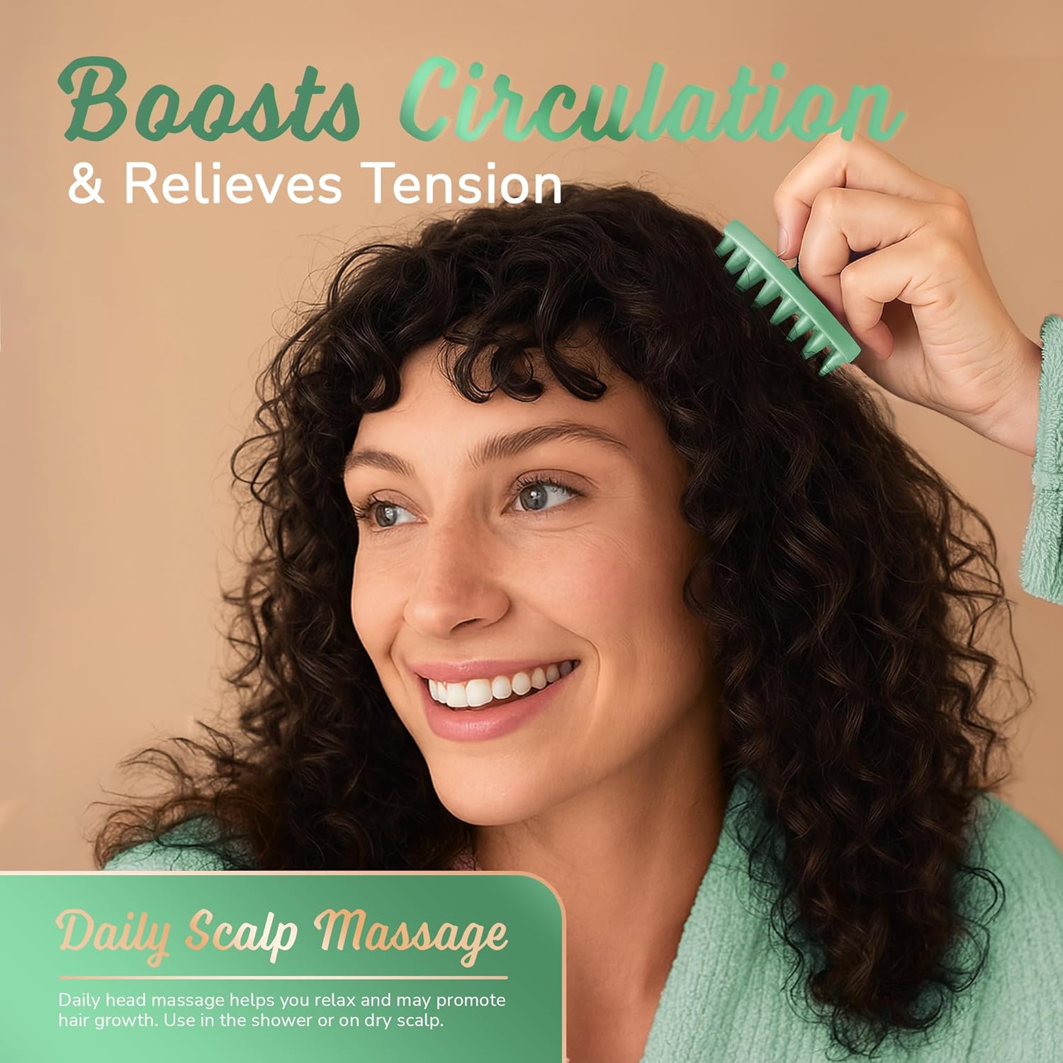 - Non-slip ergonomic handle for easy control — a balanced, palm-fitting grip stays steady in wet, soapy hands and works with either hand, giving you a relaxed, consistent scalp massage every time.