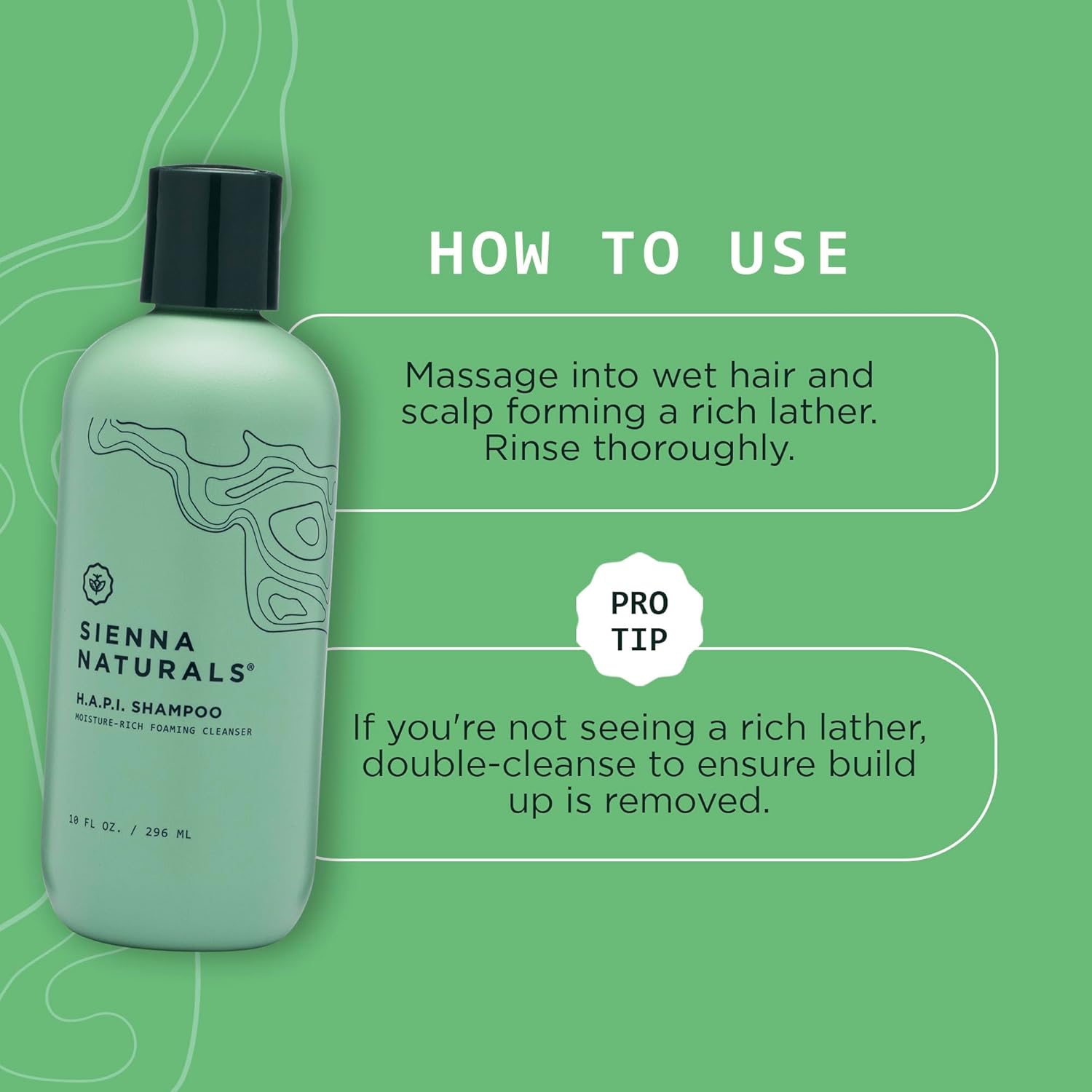 Sienna Naturals - HAPI Shampoo - Anti Frizz - Sulfate-Free, Scalp-Nourishing & Hydrating Cleanser - Gently Removes Buildup Without Stripping - pH-Balanced, Vegan & Clean Formula - 11oz