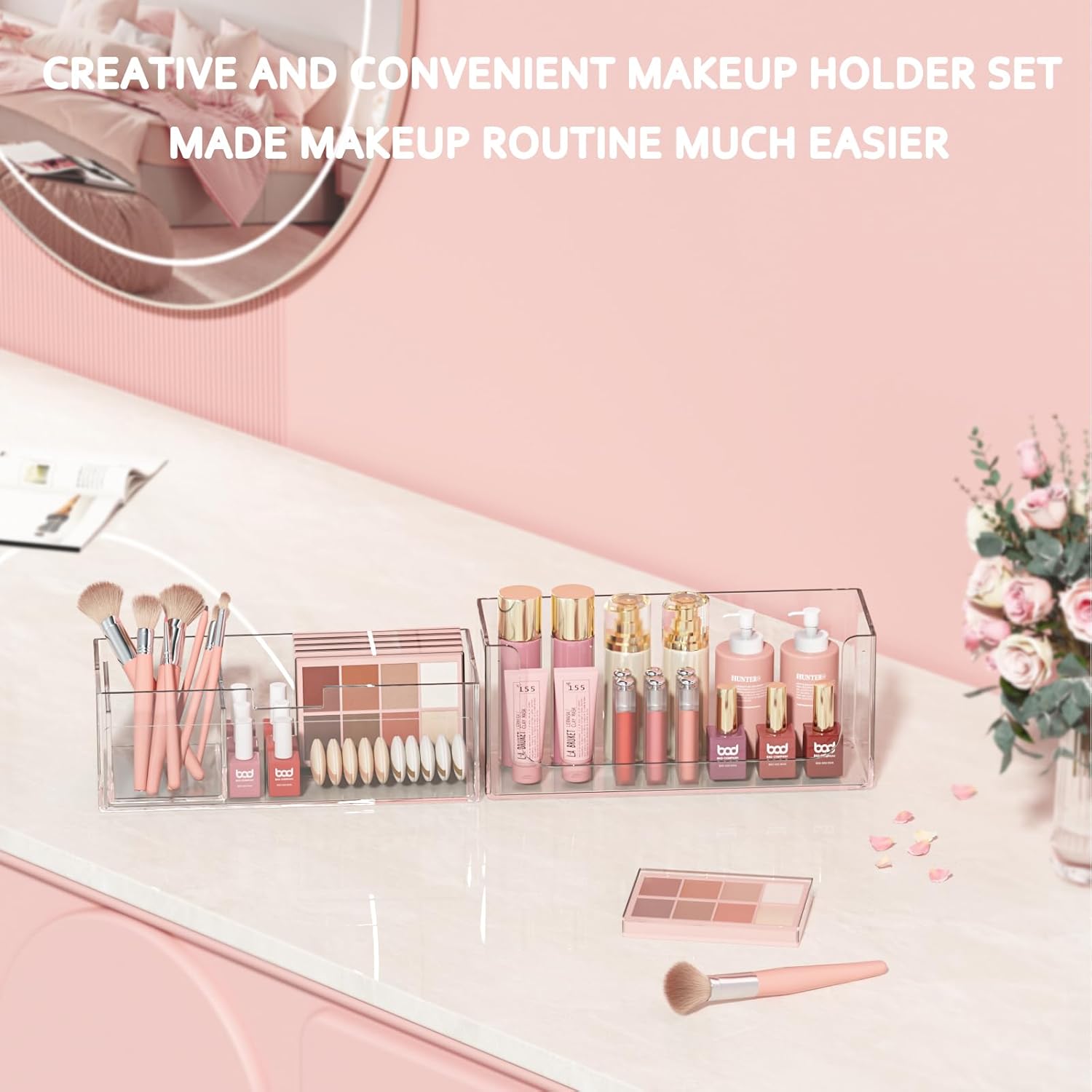 - DESKTOP ORGANIZER WITH DRAWERS: thanks to its two-in-one design, our clear organizer drawers storage box can be used as a drawer box to keep your daily essentials well organized and dustproof, or separated into two open storage holders without lids. This bathroom drawer organizer features a crystal clear body with a sleek cover for easy access and placing the items without obstruction