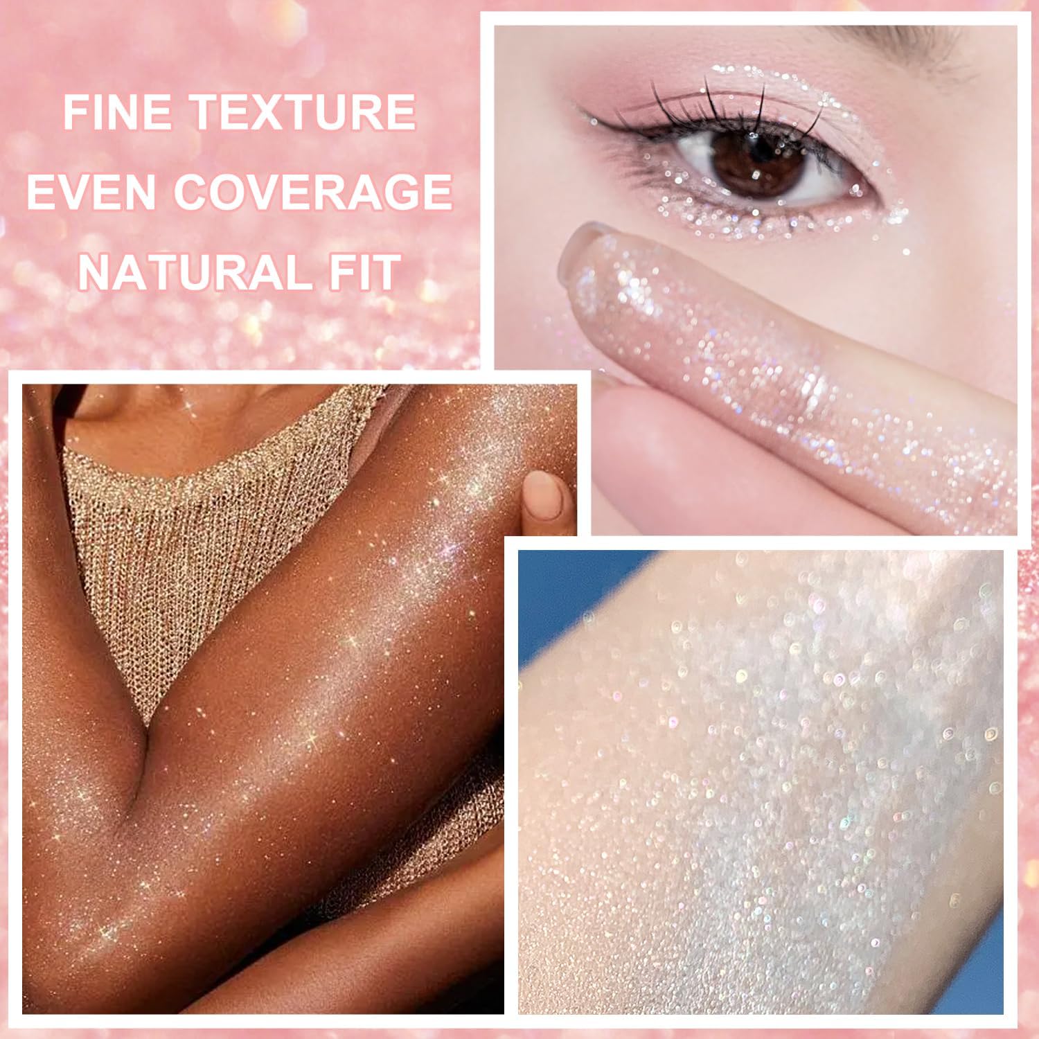 - Multi-uses - Use alone for highlighter to brighten skin, or add with your favorite liquid foundation, skincare, gel, hairspray, luminous oil or glitter glue for unique face body makeup, under eye tears, glitter braids, lip gloss and nail polish!