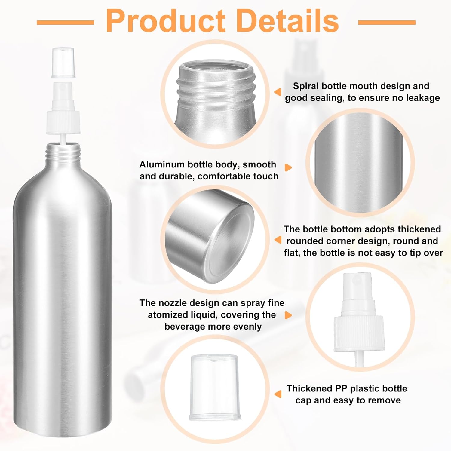 HARFINGTON Aluminum Fine Mist Spray Bottles 500ml/16oz Metal Small Liquid Alcohol Refillable Travel Container with White Plastic Nozzle Cap for Perfume Skincare Cosmetic Storage Bottle