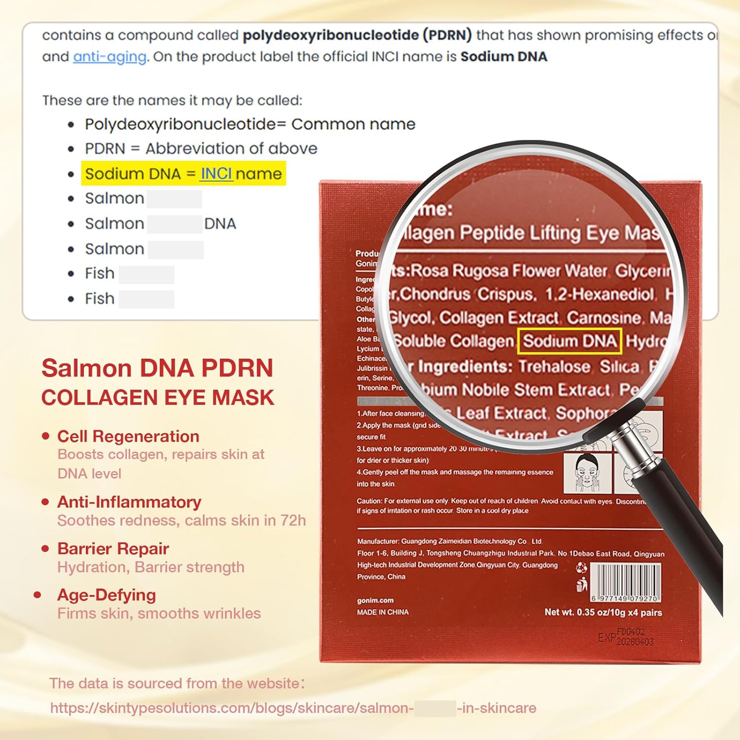 - Collagen Eye Patches with Retinol, Niacinamide & Salmon DNA PDRN: These under eye patches for puffy eyes and dark circles boost skin elasticity, reduce wrinkles and fine lines, glowing the under eye area, and provide deep hydration. Infused with PDRN, they support cellular repair and improve skin resilience. Ideal eye bags treatment for women’s self care. As part of travel accessories for women.