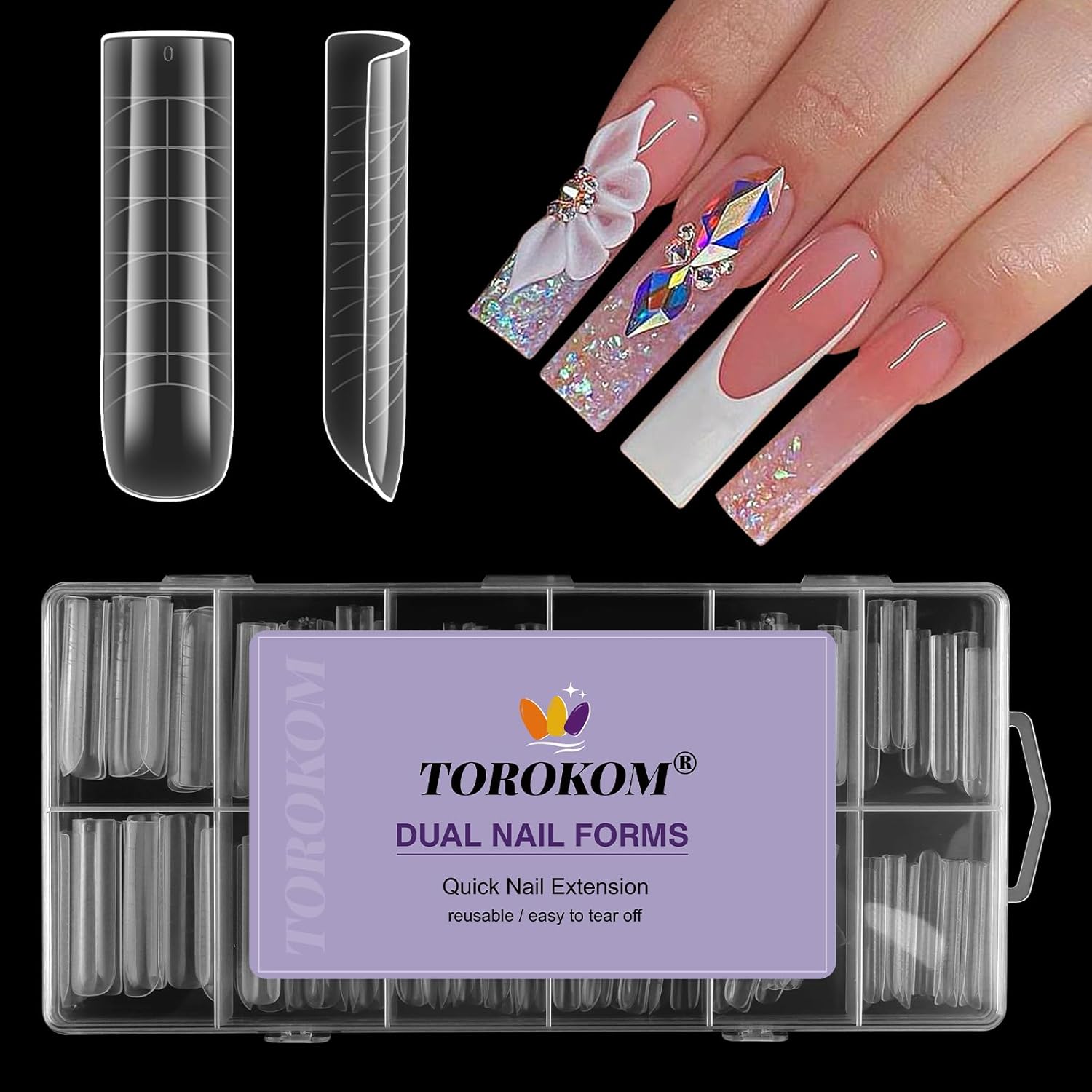 TOROKOM Poly Nail Gel Dual Nail Forms, 120 PCS Poly Nail Gel Long Square Structure Nail Molds for Builder Poly Extension Gel Nail Art Design Salon&DIY