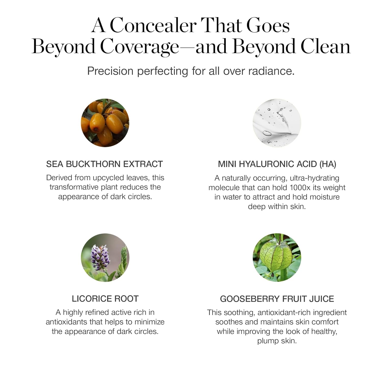 - Botanical Barrier: Powered by antioxidant-rich Gooseberry Fruit Juice and Raspberry Ketones, this creamy under eye concealer helps shield the look of skin from environmental stressors while maintaining the appearance of a plump, healthy complexion.