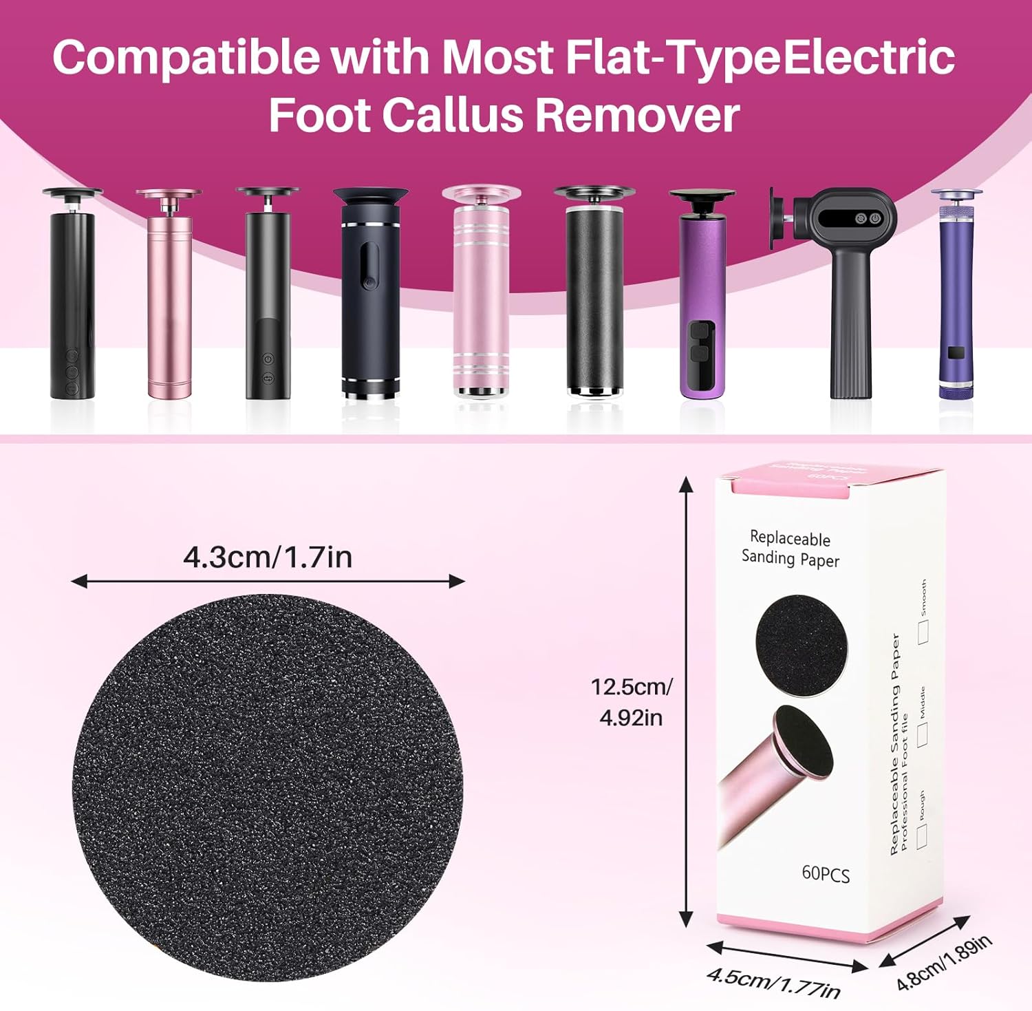 - 【Dual Grit System】"Package includes 120 Pcs professional-grade discs (60x 180-grit coarse + 60x 400-grit fine) - coarse discs target stubborn dry patches while fine discs polish skin to baby-soft smoothness. Lasts 6+ months with weekly use."