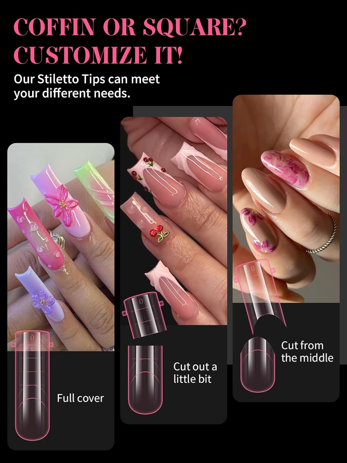 - 【Sturdy No C Curve Gel Nail Forms】Reusable extra long nail molds are made with high quality material, which is strong, tough, and reusable, providing you with a different lengths nail art experience that lasts.This artificial nails forms protective sleeve has a small handle on both sides, which is convenient for constructing gel nail extension nails, and will not stick to your hands, and can be easily removed after application.