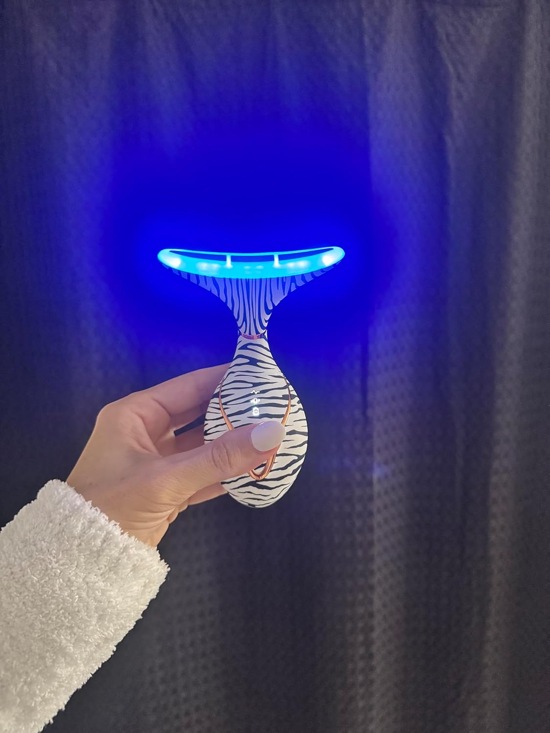 - Targeted red light for neck and face; a simple face massager tool for everyday self-care. For cosmetic use only; not a medical device.