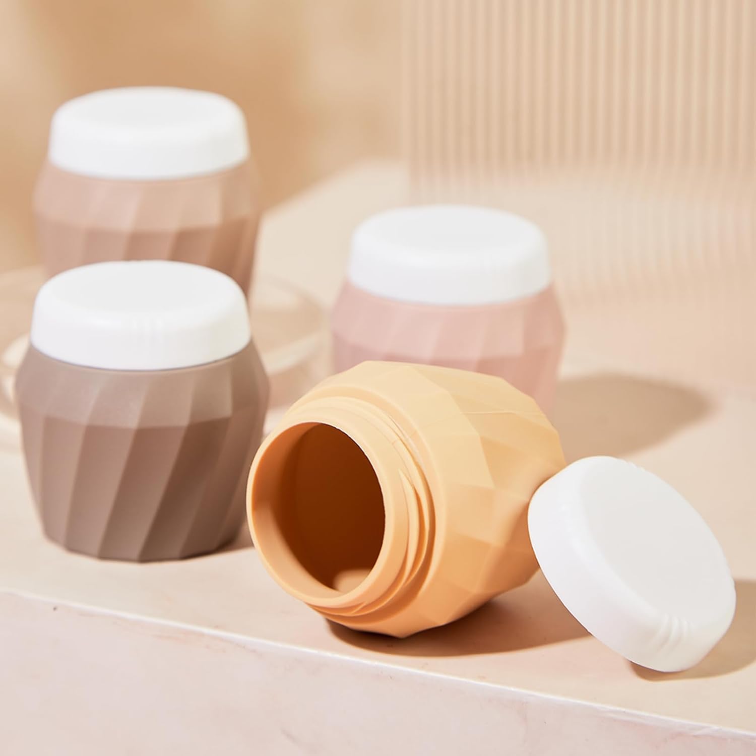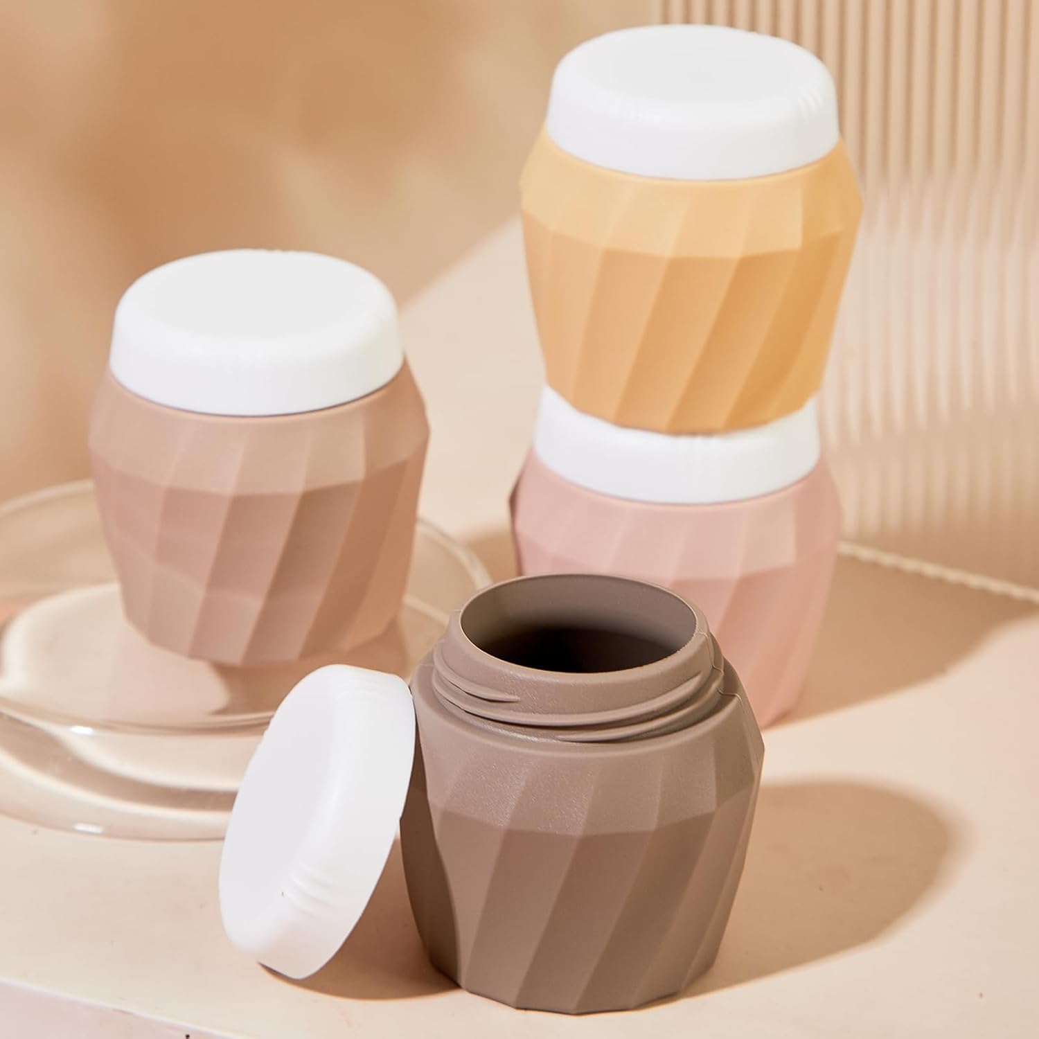 - 【MULTI-PURPOSE USE】Travel Containers for Toiletries have multiple uses. Travel silicone cream jars with lids can store creams, lotions, make-up, scrubs, ointments, accessories, beads, small jewelry and more. Works great for gel-type items