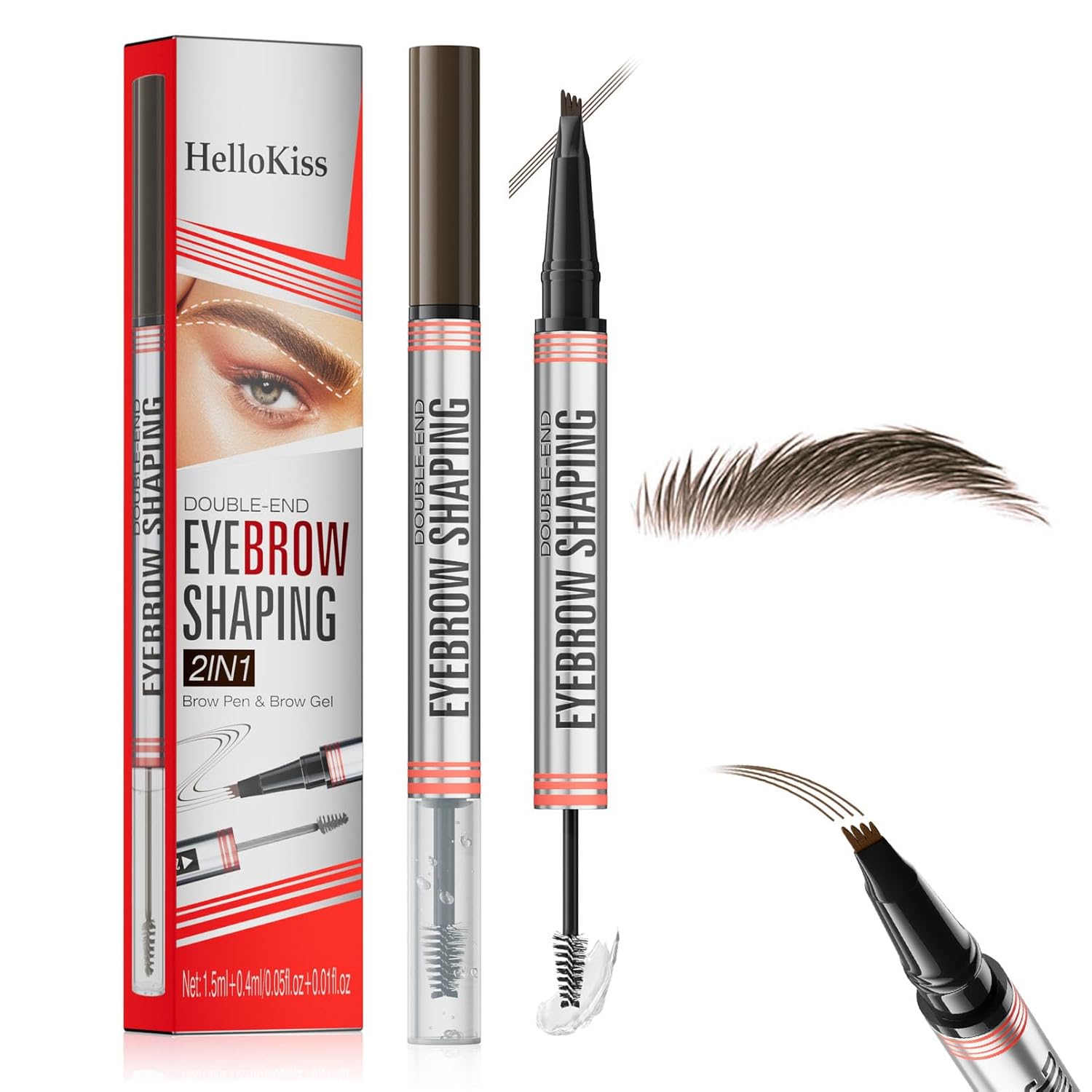 - 2-IN-1 BROW PEN: Achieve natural-looking brows with our dual-ended brow pen! The precise brush-tip creates hair-like strokes, while the 4-fork tip effortlessly fills in sparse areas and blends color for a flawless finish