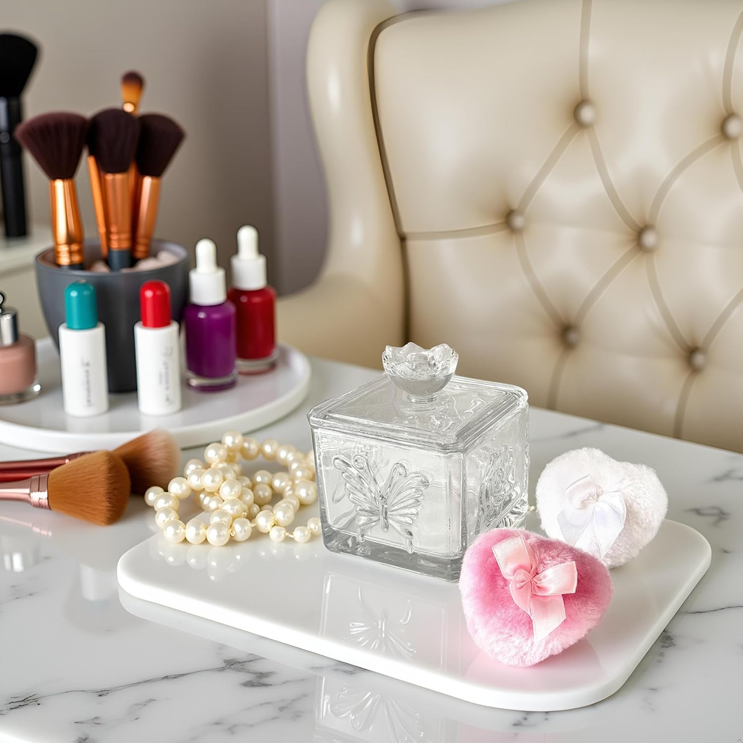 - 【Multi-Purpose Glass Box】This glass powder puff case can not only be used to store powder puffs, but also can be used to store earrings, rings, bracelets, hair accessories, knick-knacks, as well as other items in the dresser, bathroom and bedroom. It keeps your items away from dust and water, protects and decorates, and meets the needs of female users for cosmetic organization