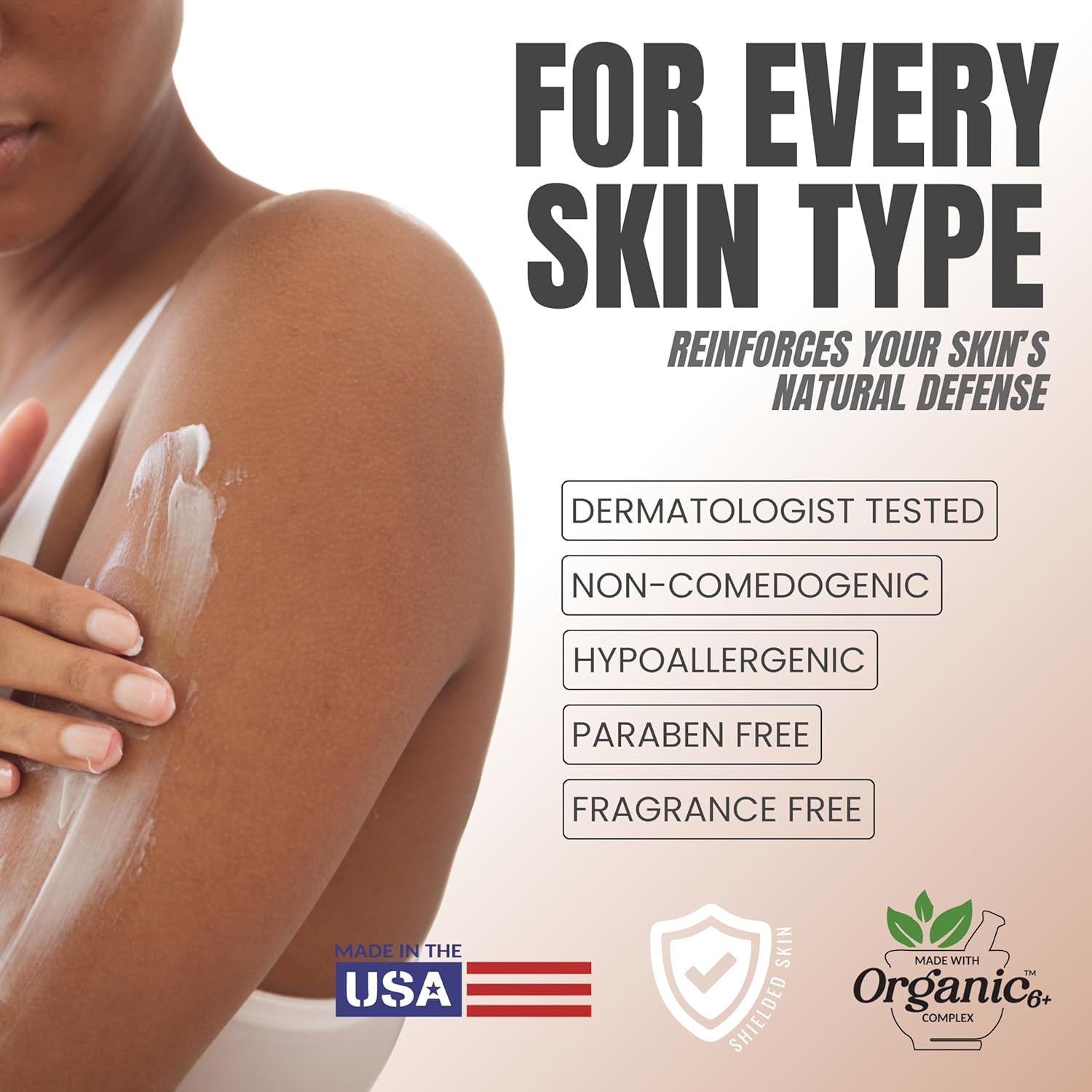 - Lightweight & Suitable for Sensitive Skin – This fragrance-free, oil-free formula absorbs quickly without leaving any greasy residue. It’s dermatologist- and allergist-tested, hypoallergenic, and made with 100% vegan ingredients, making it perfect for daily use on all skin types, including sensitive skin.