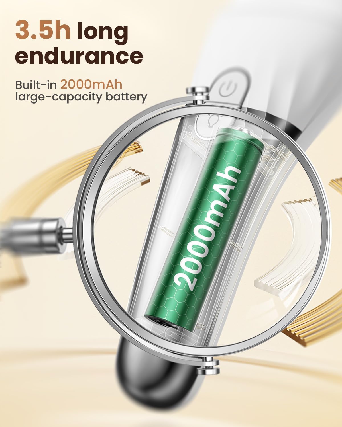- 【Smart Callus Remover with Battery Display】2000mAh lithium battery provides 3-3.5hrs cordless callus removal. Unique digital display shows exact battery percentage - never run out of power mid-treatment. LED charging indicator included.