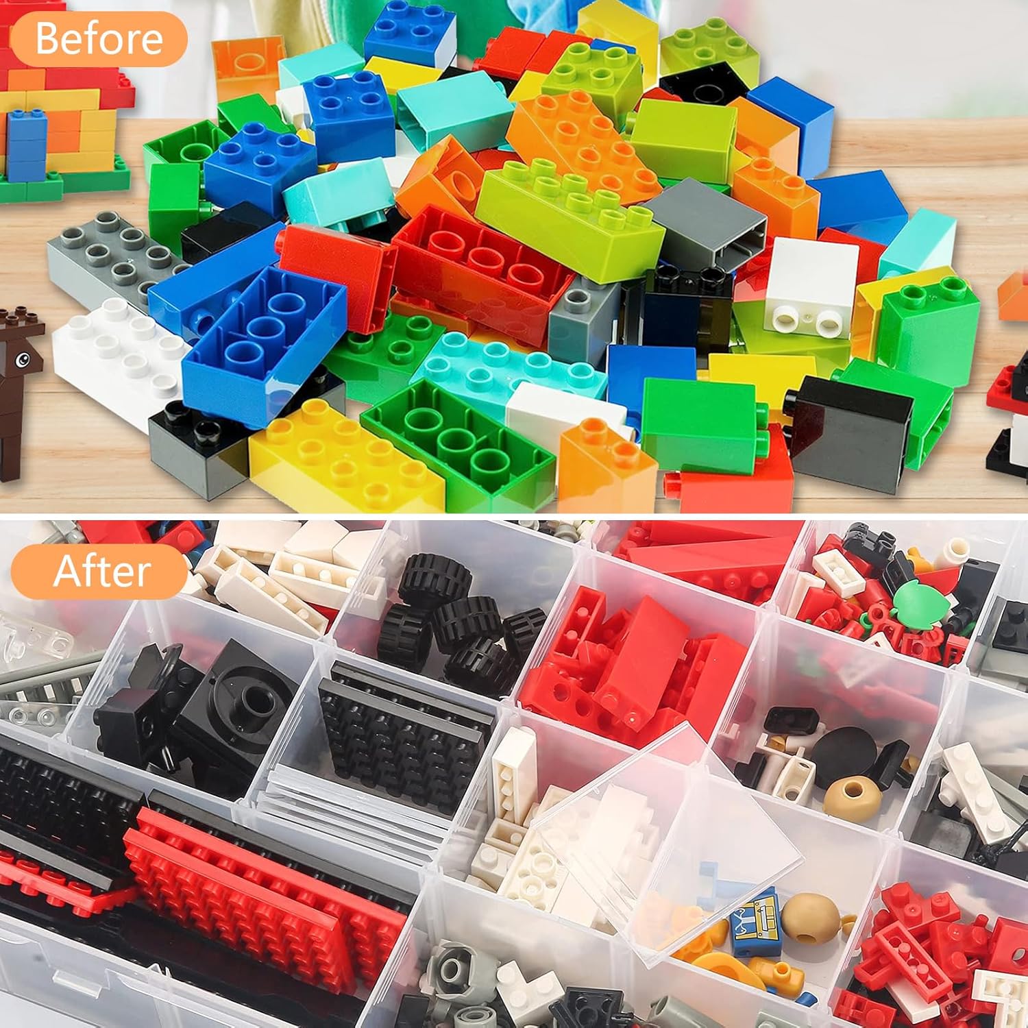 15 Large Grids Plastic Organizer Box with Adjustable Dividers,divided storage containers,jewelry organizer,Clear Storage Box for Jewelry,Art DIY Crafts,Washi Tapes,Beads and Small Parts