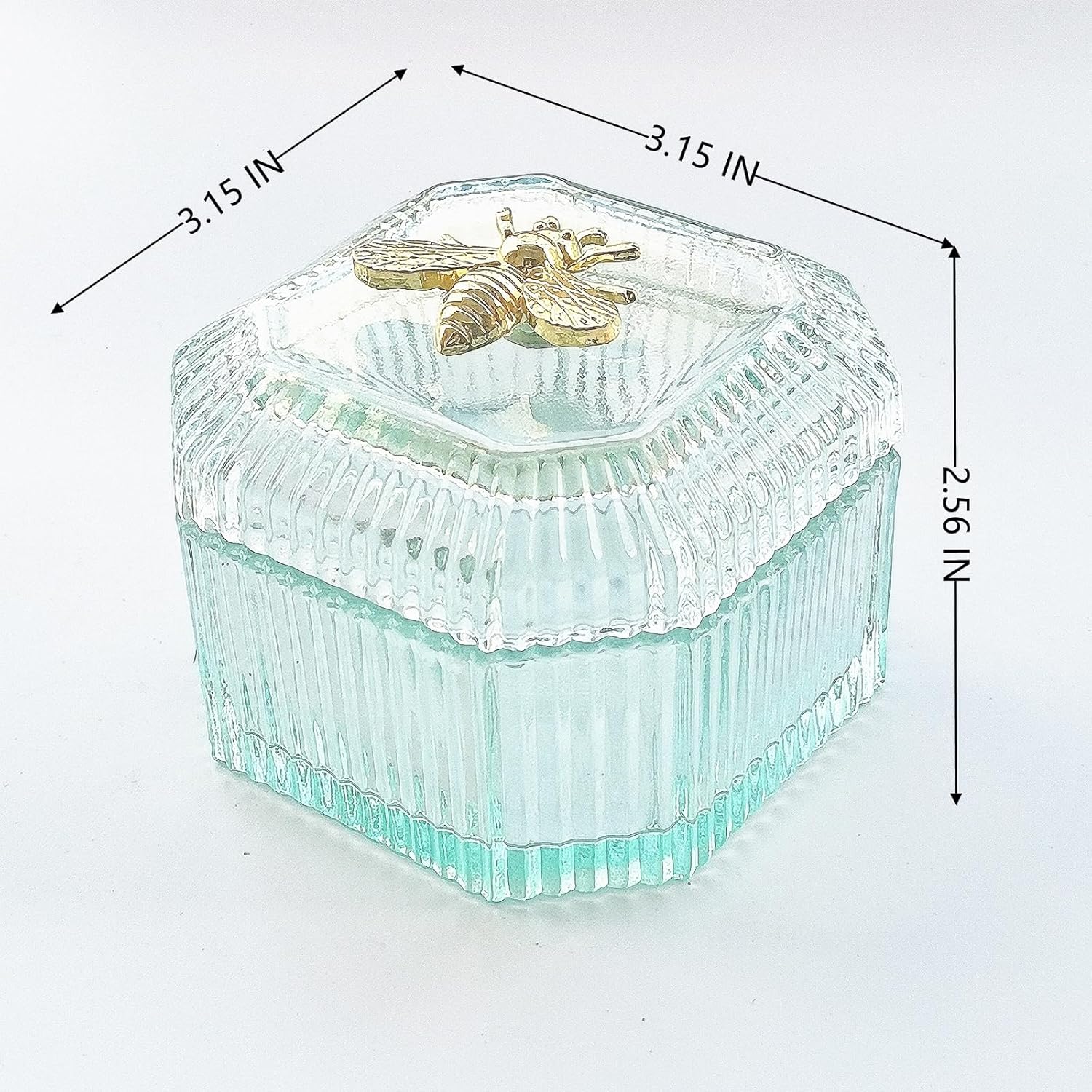 - 【Unique Design】This classic glass powder puff case has delicate and lovely beautiful embossed pattern and gold bee decorations, which makes you bright, the powder puff case measures 3.15 inches L x 3.15 inches W x 2.56 inches H, designed for dresser storage and decoration.