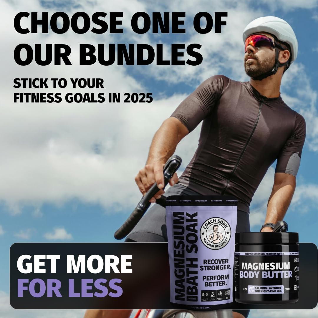 Coach Soak Recovery Bath Soak & Nighttime Magnesium Body Butter Bundle - Calming Lavender Scent - 3lb Bath Salts & 8oz Body Cream with Essential Oils, Magnesium & Shea Butter
