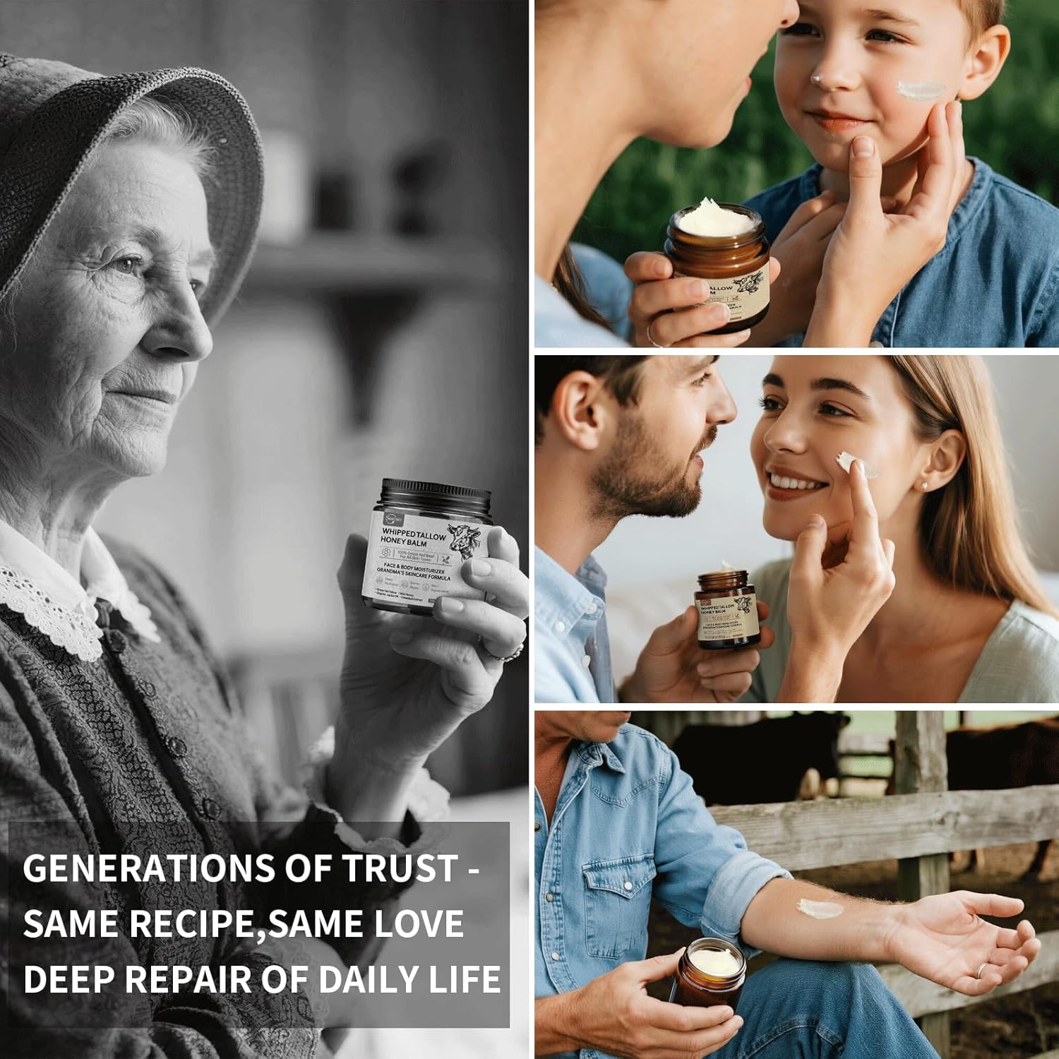 - 【Skin Love Passed Down from Generation to Generation】:Our beef tallow honey butter cream, originating from the skincare wisdom of our grandmothers, is dedicated to providing your skin with the purest. We insist on making it in the most sincere way without adding any harmful ingredients, hand-whipped, just like how our grandmothers used to make it, worthy of full trust. If you have any questions, please feel free to contact us, and I will respond to your needs promptly. We look forward to sharing the love and warmth of the with you, allowing your skin to feel high-quality soft and smooth.