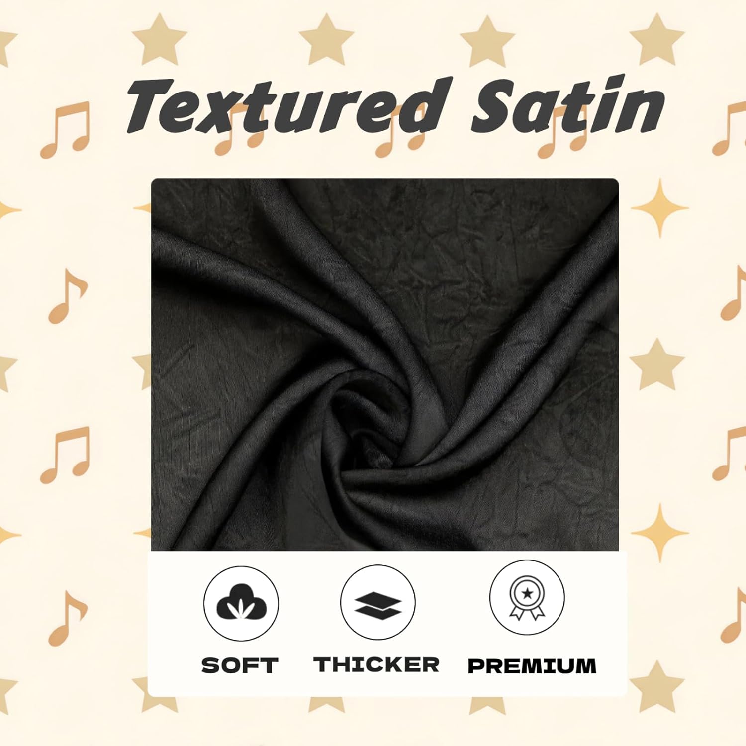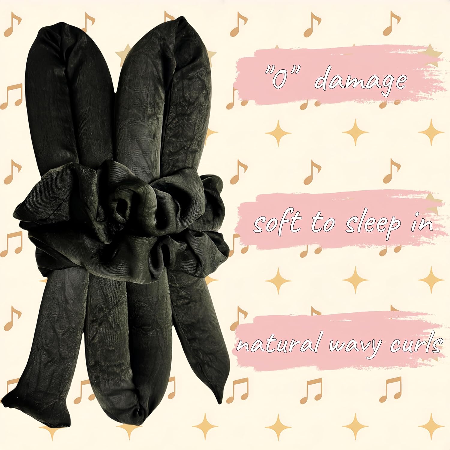 Serenade Textured Satin Heatless Curls Overnight, Heatless Hair Curler Curling Set for Women and Girls to Sleep in, with 2 Satin Scrunchies and 1 Clip for Overnight Curls, Black