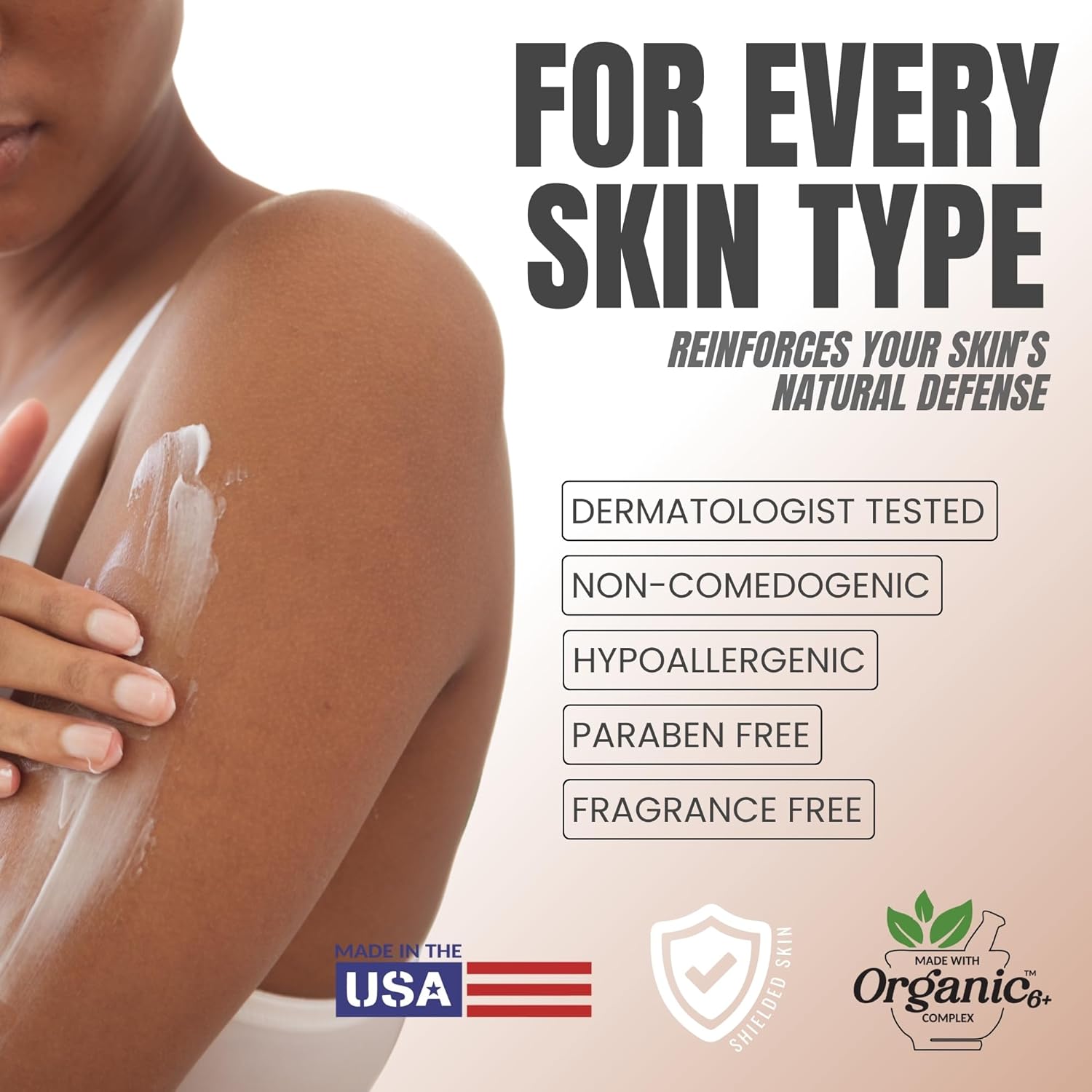 - Lightweight & Suitable for Sensitive Skin – This fragrance-free, oil-free formula absorbs quickly without leaving any greasy residue. It’s dermatologist- and allergist-tested, hypoallergenic, and made with 100% vegan ingredients, making it perfect for daily use on all skin types, including sensitive skin.