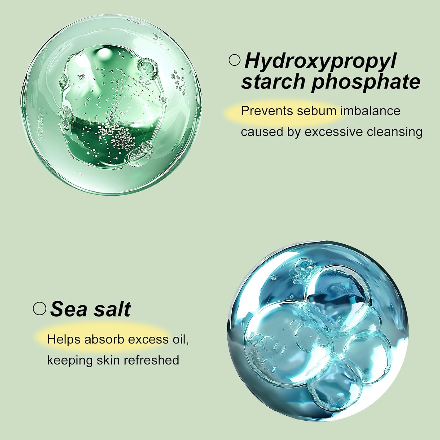 - ✅Oil control ingredients: - Contains sea salt and plant extracts to reduce oil on the skin surface and effectively control oil.