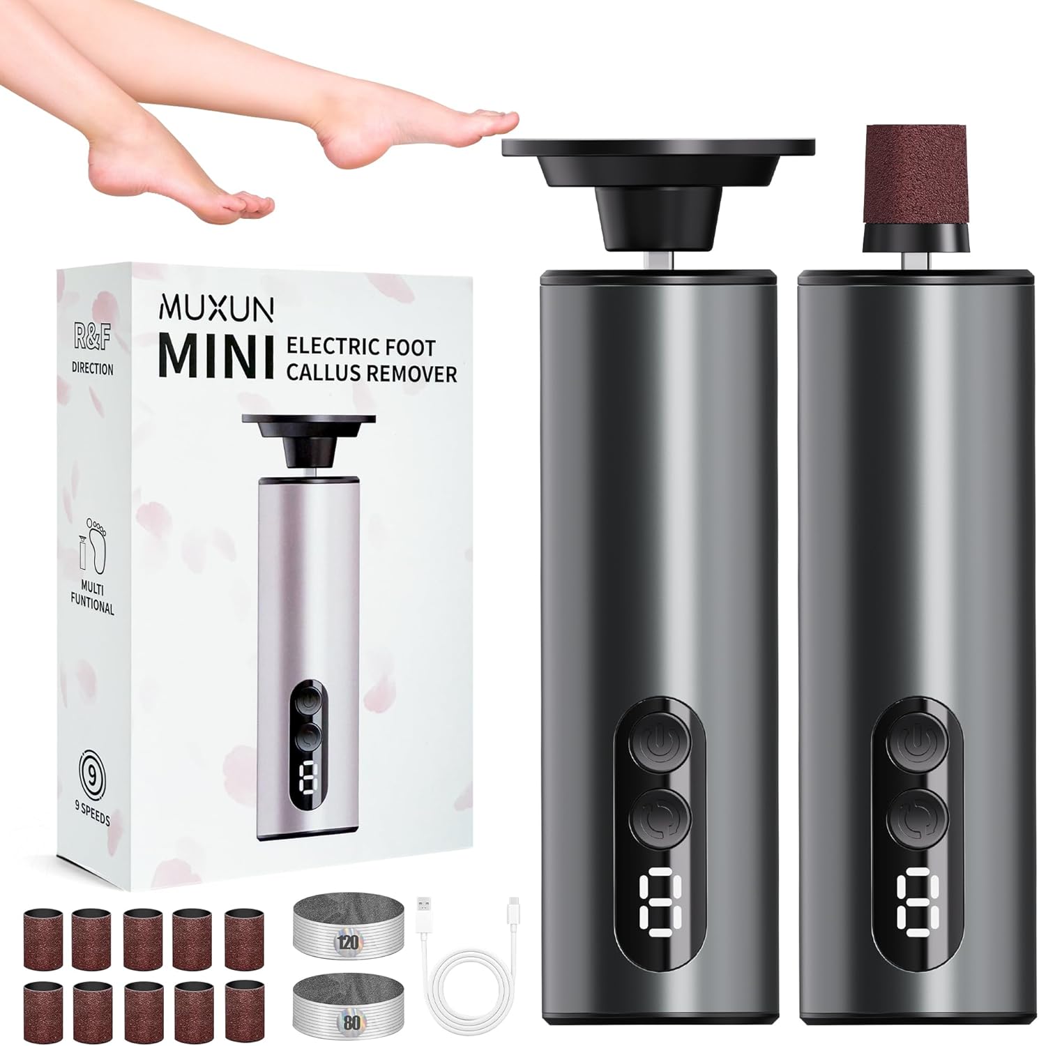 - [2-in-1 feet scrubber dead skin and nail grinder]:This calloused feet remover tool features an upgraded 2-in-1 design that can remove dead skin from the feet. It comes with 20 sanding discs (fine and rough) and 10 nail sanding rings, making it easy to use on high heels, toes, sides, and nails. At home, salon level hands and feet do not require additional tools. Sandpaper can be reused until it no longer has the ability to grind.
