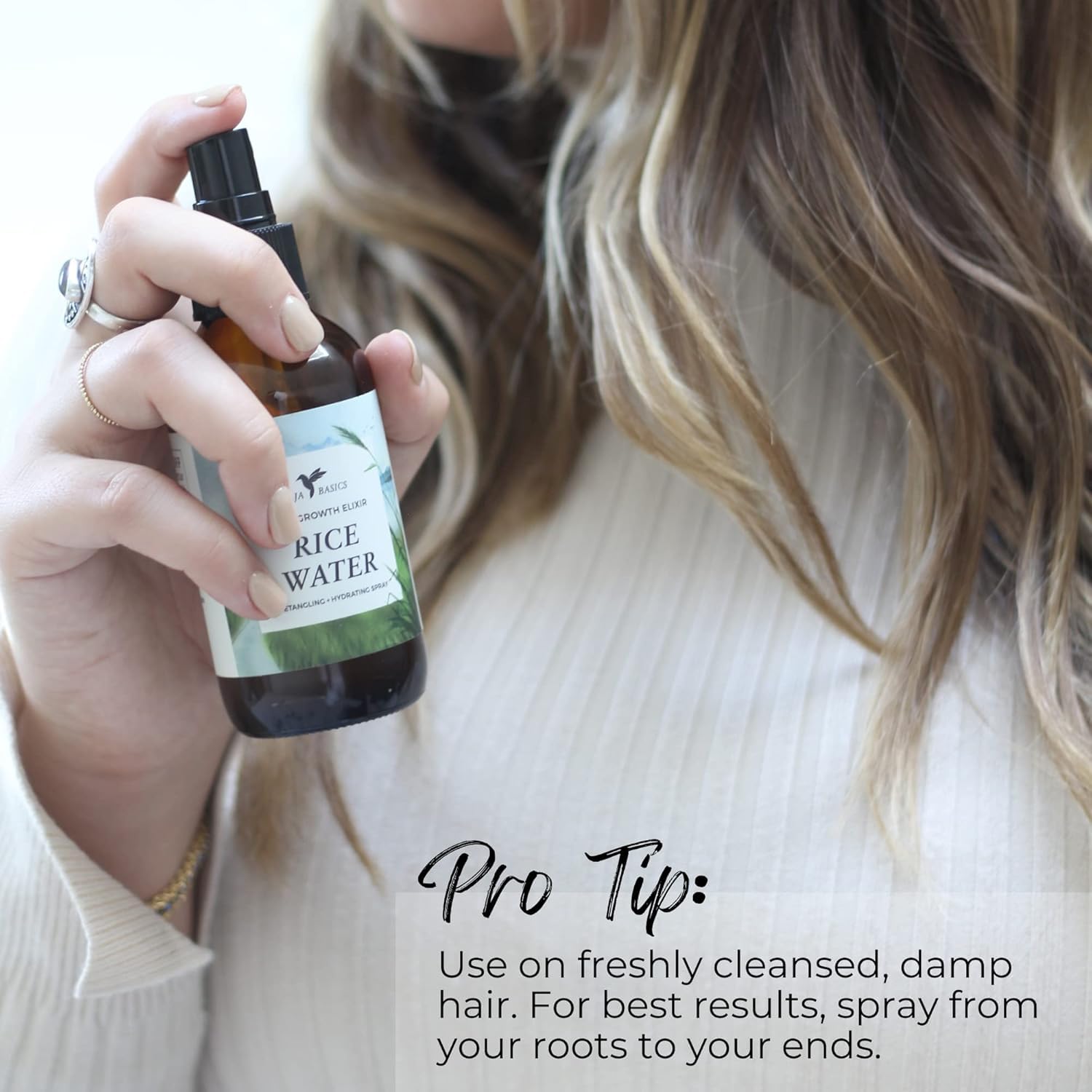 - Crafted with clean, nourishing ingredients - Our rice water hair spray was thoughtfully formulated and enriched with hair-loving nutrients like inositol and vitamins C and B5, promoting smoother, shinier hair while supporting healthy growth and protecting against hair loss.