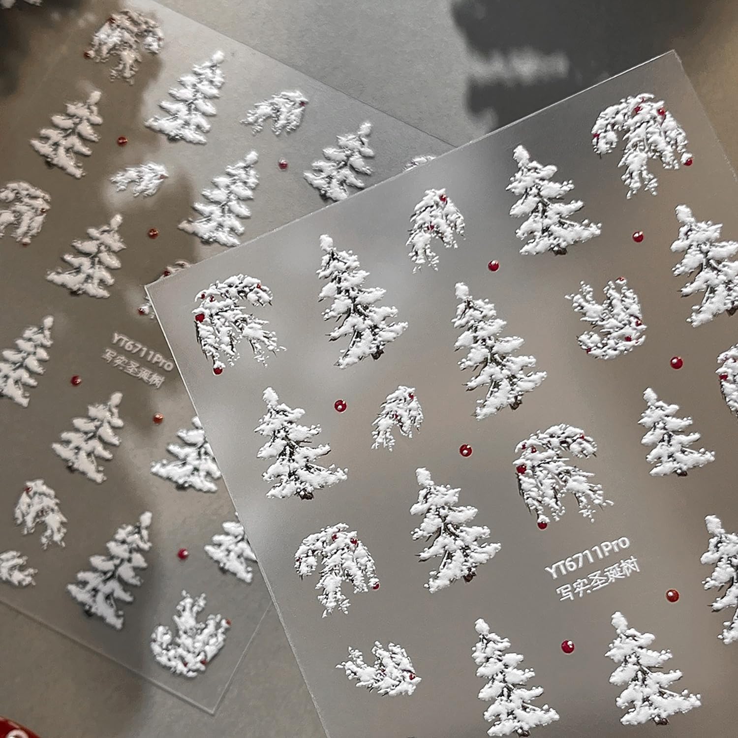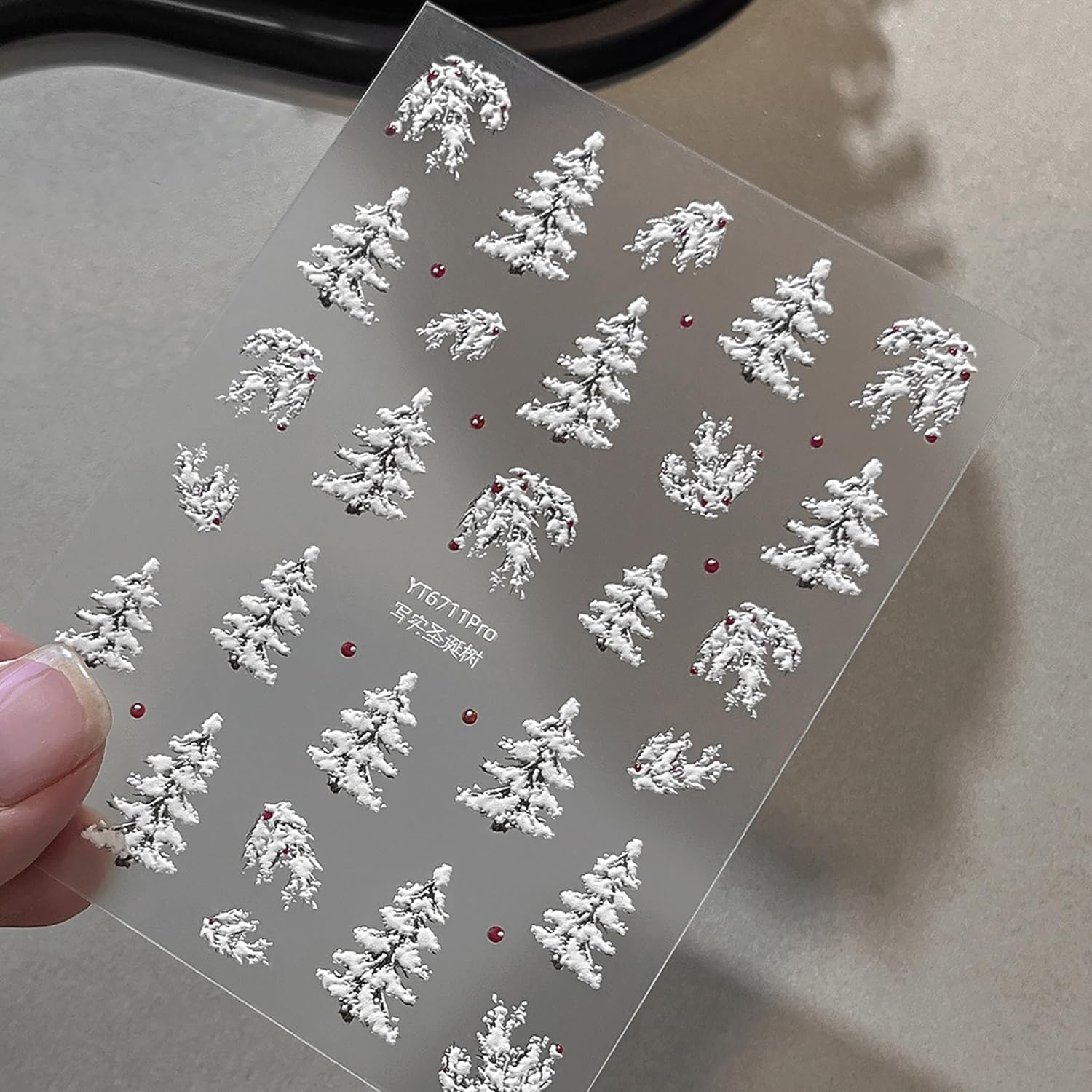 Christmas Nail Stickers 5D Embossed Christmas Nail Art Stickers with Snow Christmas Tree Xmas Tree Designs Winter DIY Self-Adhesive Nail Art Decorations for Women Girls